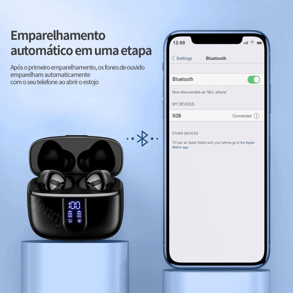 O emparelhamento é automático após o primeiro uso — basta abrir o estojo e os fones se conectam ao aparelho em segundos.